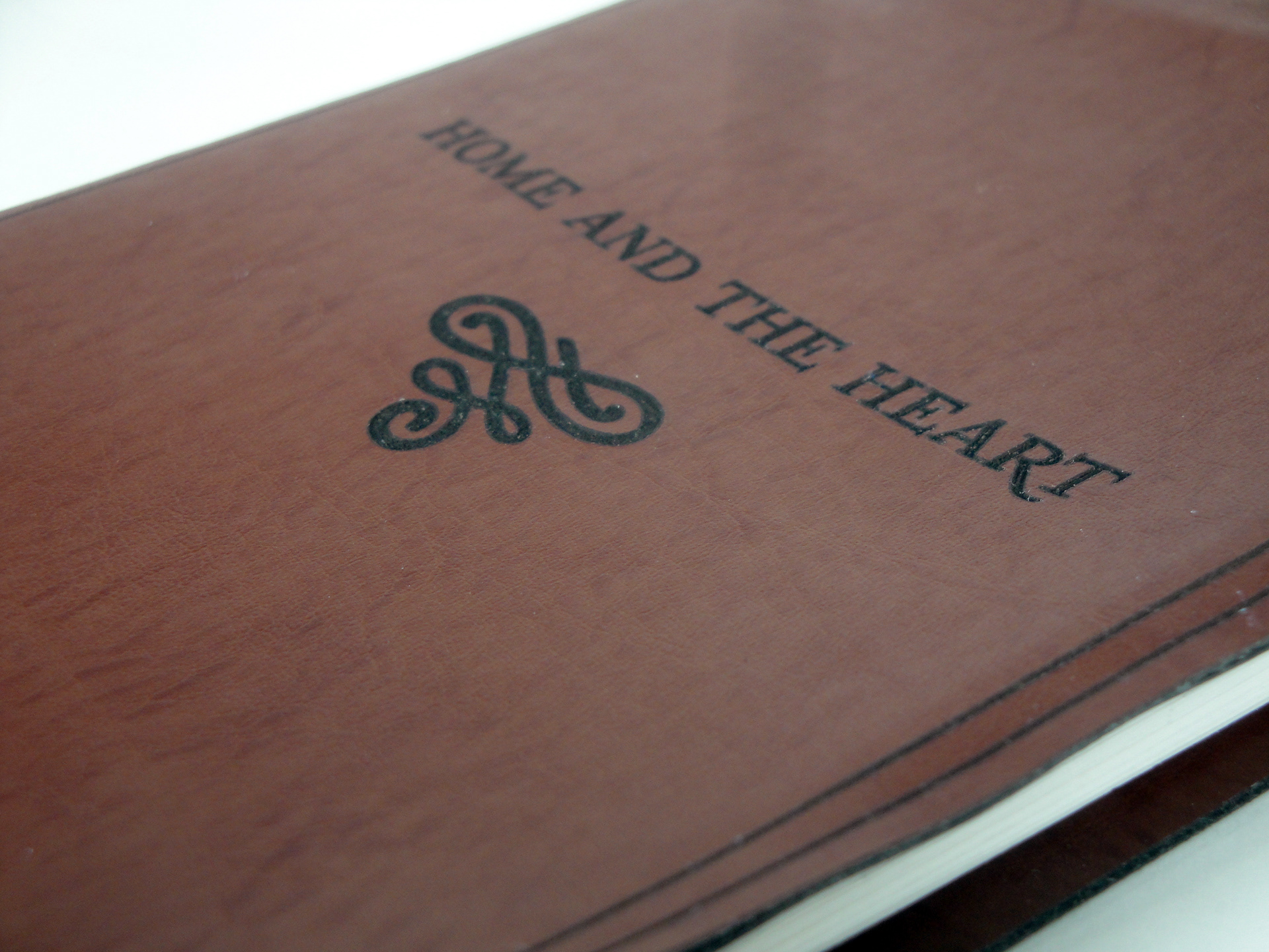 Leather-bound, engraved cover of the journal-like book.